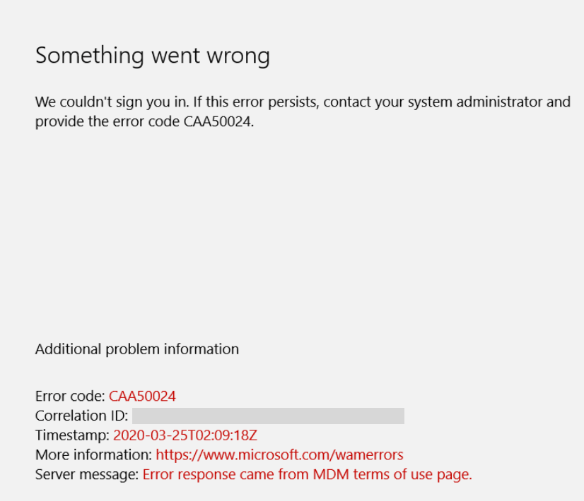 Hello Readers! Have you ever encountered the error CAA50024 when trying to enroll a Windows 10 device? On this post we will review the posible causes and resolutions, hopefully this will help you to resolve the issue if you are facing it as well.